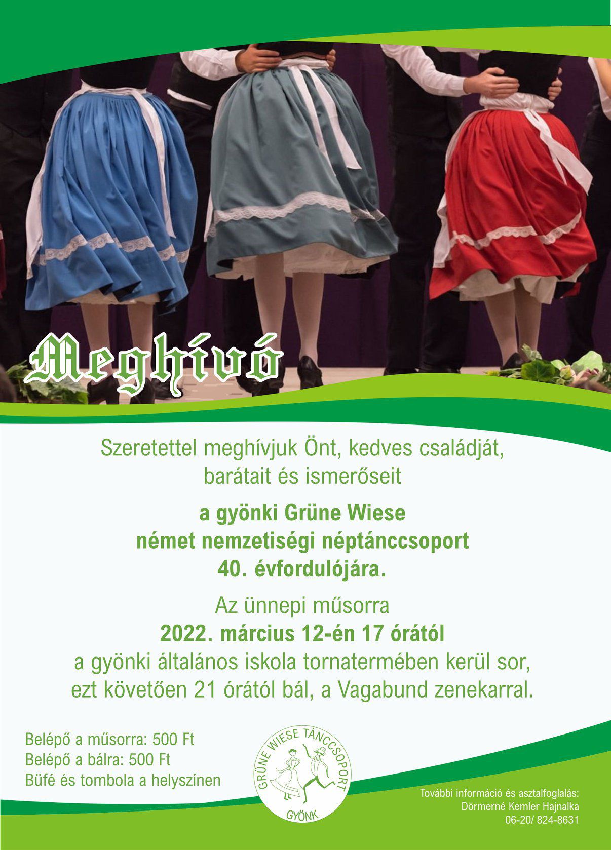 Asztalfoglalás és további információ a Gyönki Művelődési Ház és Könyvtárban személyesen vagy telefonon Dörmerné Kemler Hajnalkánál a +3620 824 8631-es telefonszámon.