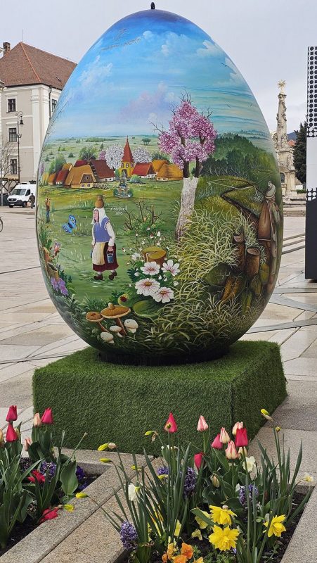 Megérkezett Pécsre a Kapronca-Körös Megye ajándékaként kapott kézzel díszített óriáshímes tojás, amely a tavaszi belváros immár hagyományos dísze lett. A tojás nemcsak a húsvéti hagyományokat idézi meg, hanem a pécsi nemzetiségi közösségek és a határon túli magyarok ünnepi készületét is.